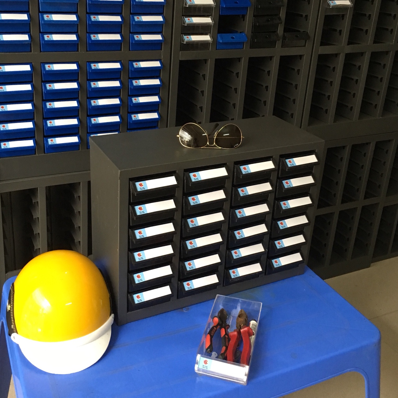 B-là loại tủ khay màu xanh